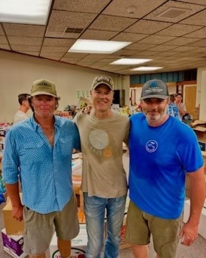 Expecting to carry cases of water to people’s car, the Chief instead asked Barry and Marshall to join him and his crew as they began initial assessment of how best to help people clean up. “We went to an area that I’ve spent a lot of time in and around,” Barry recalls. “I’ve hunted and fished that river for years and years, and I was still having a hard time getting my bearings on where I was because the banks of the river once had gigantic trees and now they are all gone . . . There were no trees standing anymore, sand everywhere, mud everywhere. I was speechless.”